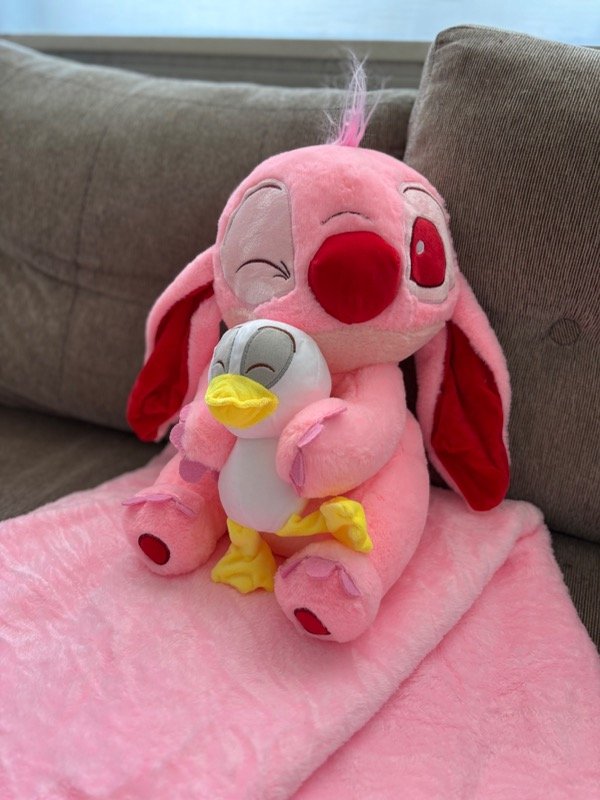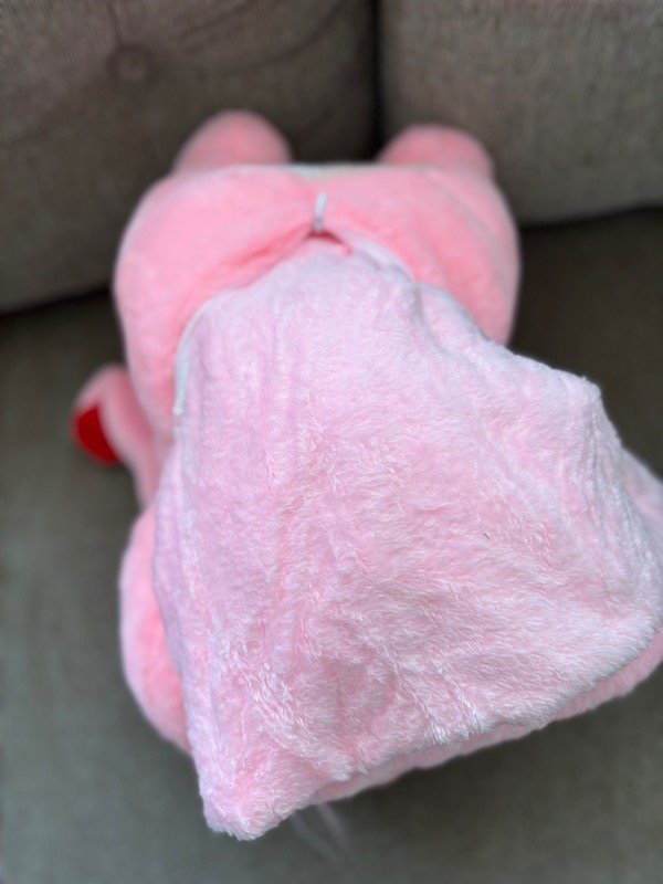 🧸 Peluches de 40x28cm rellenos de vellón + manta de Polar soft de una plaza que se guarda en su interior.